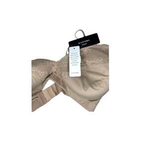 The Natori Maternity Bliss Perfection Wire Free Nursing Bra in size 34D is a comfortable and supportive undergarment designed specifically for nursing mothers. With a wireless design and soft cup, it allows for easy nursing and provides a secure fit. The beige color and stylish nursing bra style make it a practical and fashionable choice for women looking for comfortable support.