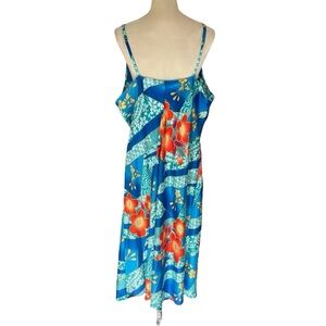 Natori Mikoto Floral Sleeveless Satin Night Orange Blue Gown Women Size XL