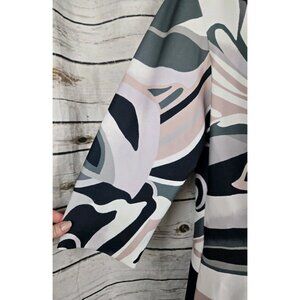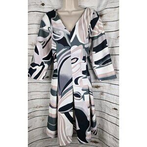 Natori Mod Print Midi Dress 16 Gray Blush Pleated Womens V-neck Stretch