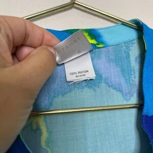 Natori MuuMuu Dress Medium Large ? Blue Tropical Maxi Long Double Slit Sleeveless Caftan