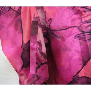 Natori Pink Floral Satin Canyon Lotus V Neck Split 3/4 Sleeve Shirt Size XS NWT