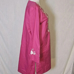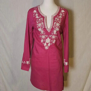 Natori Pink Long Sleeve Boho Sequin/Embroidered Hippie Tunic Top SZ L