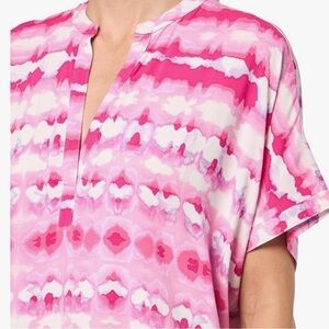 Natori Vibrant pink white tie-dye top. Features a relaxed fit and short sleeves.
