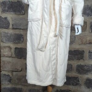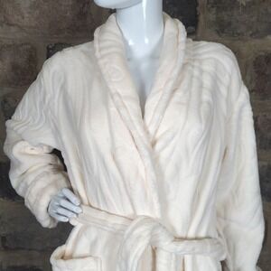 Natori Plush Off White Robe Long Embossed Design Warm Cozy Shawl Collar Medium