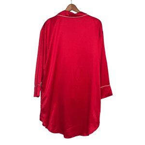 Natori Private Luxuries Large L Red Satin Silky PJ Pajama Night Sleep Shirt