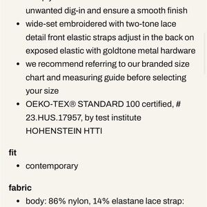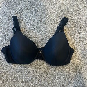 This bra has been worn but is in good shape. Elastic is in good shape as are cups are straps. Pretty and functional bra. Gold and lace details.