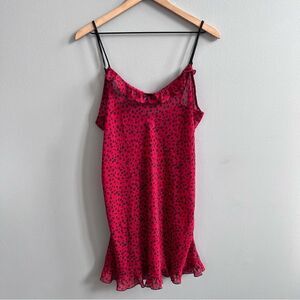 Natori Robe & Nightgown Set Red and Black Leopard Spots Ruffle Size Medium Large