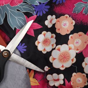 Natori Robe and Nightgown Set Womens S/M Black Pink Floral Satin Slip Kimono