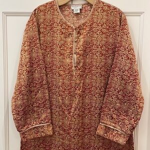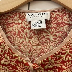 Natori Rust-Cream Floral Design Kaftan—Button Front—Gorgeous!! Beautiful fabric and design. Great for lounging. Excellent Condition. Size Medium.
