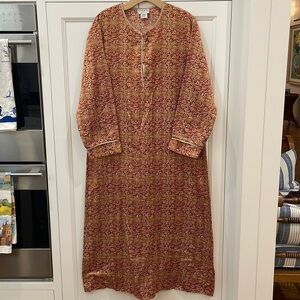 Natori Rust-Cream Floral Design Kaftan—Button Front—Gorgeous!! Excellent Cond—M