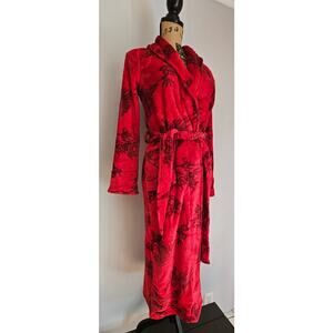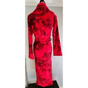 Natori Ryu Jacquard Robe Dragon Plush Velour Brocade Red , Sz XS