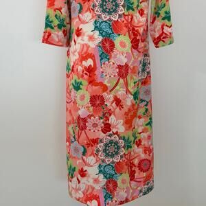 Natori Satin Caftan House Dress Floral Long Flowing Robe S