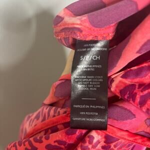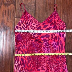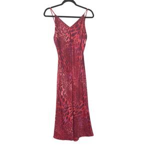 Natori Silky Luxe Leopard Slip Midi Gown Red Pink Animal Print S