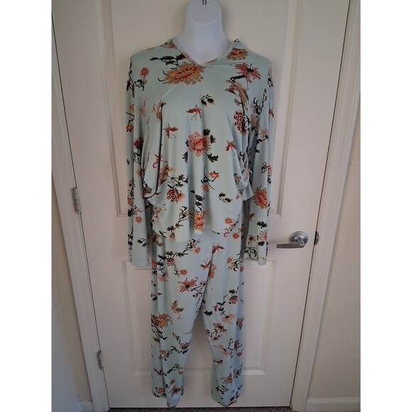 Natori Soft 2 Piece Pajamas Set Light Blue Floral Pants + Top Women’s XL