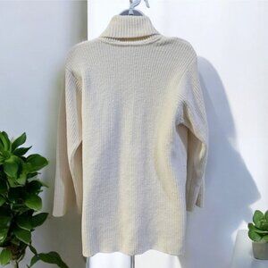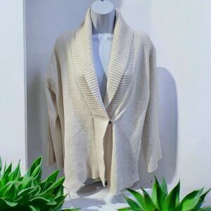 Natori ✦ White Chunky Knit Cardigan Sweater ✦ Button Closure Cowl Collar M