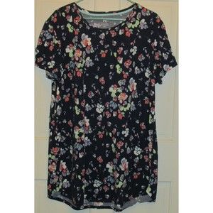 Condition: Pre-owned Size: XL Color: Blue all over floral print Features: Pullover - Short Sleeve - Tunic - Round neck