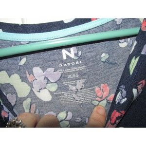 Natori Women's Blue Floral Print Short Sleeve Pullover Tunic Blouse Size XL