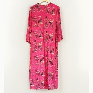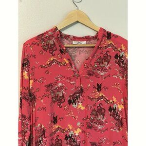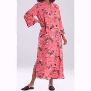 Natori Womens Pagoda Challis Caftan Coral Pink Sz Medium Pockets Travel Vacation
