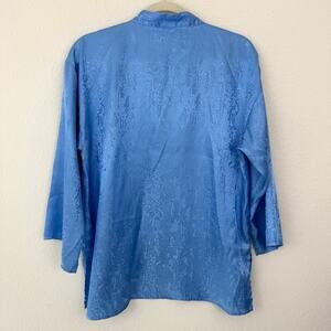Natori Womens Pajama Sleep Top Size M Satin Relaxed Flowy Lounge Blue