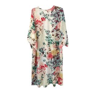 Natori Women’s Size 1X Floral Satin Kaftan Lounge Dress Kimono Resort Boho Chic
