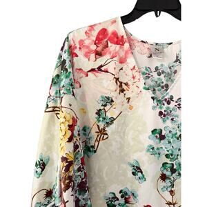 Natori Floral Print Kaftan 1X Satin Lounge Dress Kimono Style Resort Wear