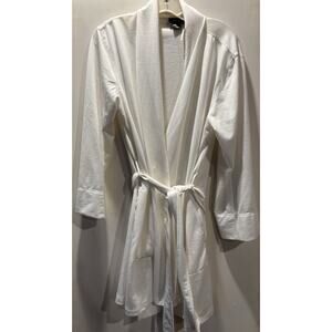 Elevate your lounging experience with the Natori Women's White Robe in size Medium. Crafted from a luxurious blend of polyester and rayon, this kimono-style robe features a lightweight chiffon fabric that offers a soft, airy feel perfect for any season. The solid white color lends versatility to this piece, making it an elegant addition to your home attire or a cozy layer for a relaxed weekend morning.