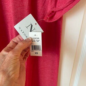 Quality brand Natori gown new with tags attached; size XS but this roomy and comfortable yet flattering style will fit many body sizes. Approximately 52” or 53” long; see photos. In a 65% polyester 35% rayon blend.