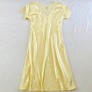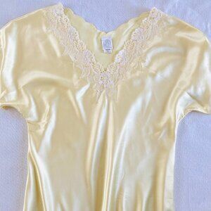 Natori satin lace night dress Medium butter yellow vintage midi maxi luxury