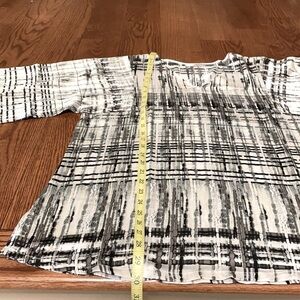 Natori women’s loungewear blk / wht linear pattern, wide 3/4 sleeves.