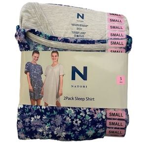 Natori 2 pack sleep shirt one is floral blue print and the other gray size small