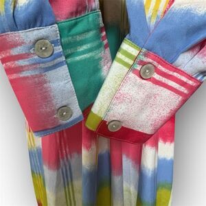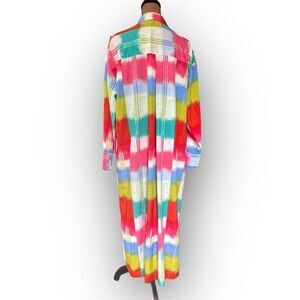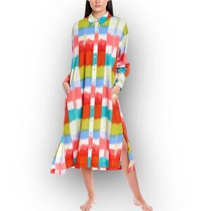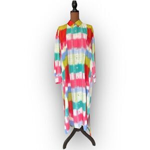 Natori Boro Kaftan Button Down Dress Colorful Turquiose Geometric Women’s Medium