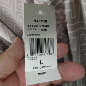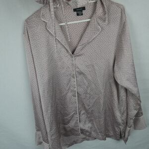 Natori Labyrinth Short PJ Pajama Set Pajamas Shorts Button Front Satin Large Lrg