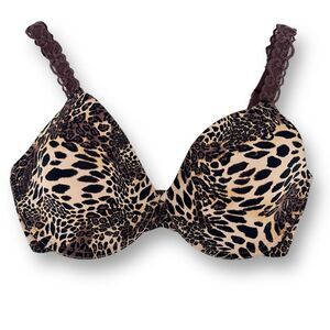Stylish leopard print bra. Features lace straps. Comfortable fit.