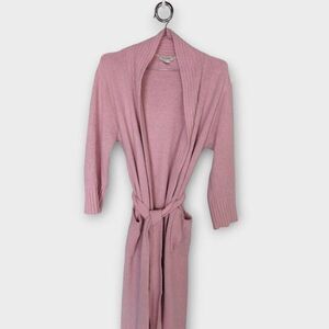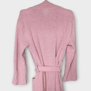 Natori Womens Robe Sz XS Pink Fleece Cozy Midi Belted Closure Pockets Sleepwear