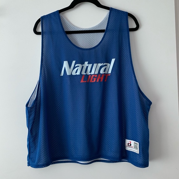 If you love beer or generally fratty attire, this is the Jersey for you! Reversible blue/white Natural Light Beer Jersey, size Mens L/XL but definitely would fit a large range of body sizes (men and women). Perfect for all your spring and summer outdoor activities! 🍻 tagged as chubbies brand for exposure.