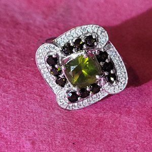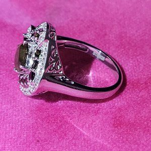 This beautiful sterling silver ring has 2.09 carats of natural green tourmaline and is a size 7.5.