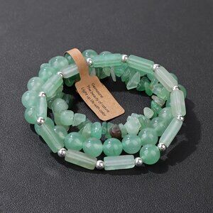 Features: Elegant set of three bracelets with 8mm green aventurine beads, strung on elastic for a perfect, comfortable fit. Known for promoting luck, harmony, and reducing stress—these bracelets are great for everyday wear, meditation, or gifting.