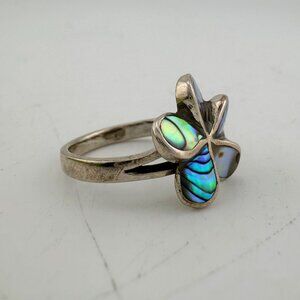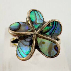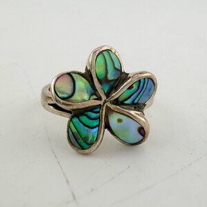 Natural Abalone Flower Ring in Sterling Silver Size 6.75