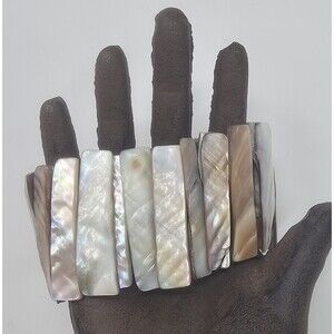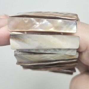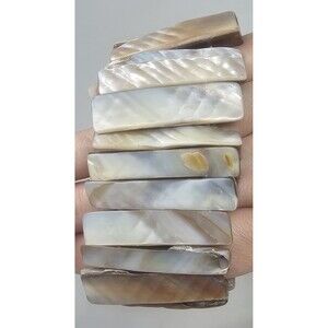 Natural Abalone Shell Iridescent Mother Of Pearl Stretch Cuff Bracelet Nautical