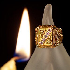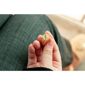 Men’s Magnificent Natural Alexandrite & Diamond Ornate Signet Ring in 18k Yellow Gold