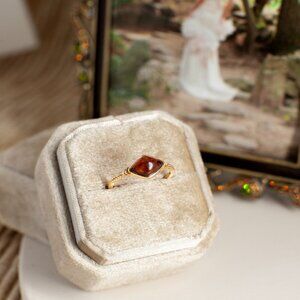 This dainty natural amber ring is full of warmth and character. Made with a genuine amber stone and set on a thin, 14K gold-plated band, it’s the perfect blend of earthy and elegant. Every stone has its own unique glow, from deep honey tones to golden flecks — no two are the same.