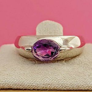 Natural Amethyst 925 Sterling Silver Ring Sz 7