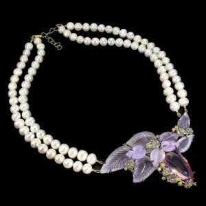 Natural Amethyst, Ametrine, Pearl 925 Silver Necklace With Carved Stones