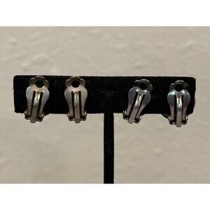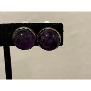 Natural Amethyst & Carnelian Vintage Clip On Earrings Silver Tone