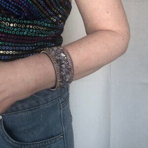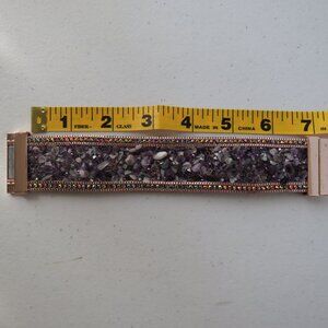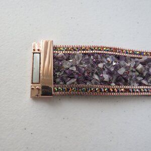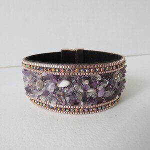 For Sale is Natural Amethyst Chips Genuine Stones Rhinestones Suede Leather Magnetic Clasp Bracelet Wristband.