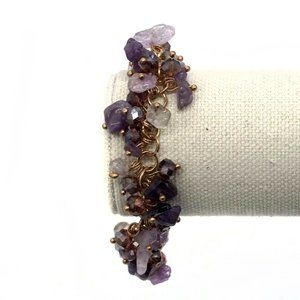 Natural Amethyst Gemstone Bracelet Purple, Gold Chain.
