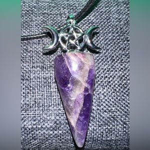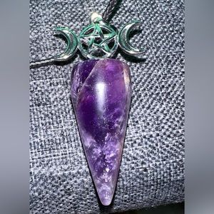 Natural Amethyst Inlay Pendulum Star Moon Pendant
