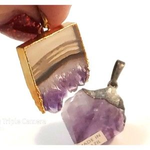 Natural Amethyst Pendant Healing 2pc Brazilian
