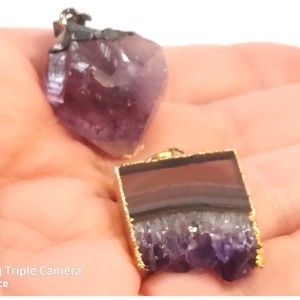 Choose this set of 2 gorgeous Amethyst Pendants, Natural Stone from Brazil, Healing, Chakras,