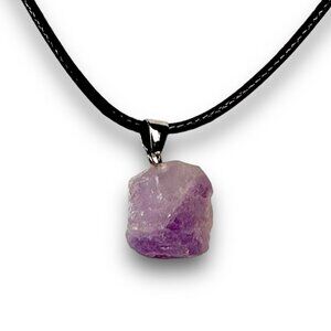 Natural Amethyst Quartz Necklace Pendant Raw Spiritual Balance Calming NWOT
